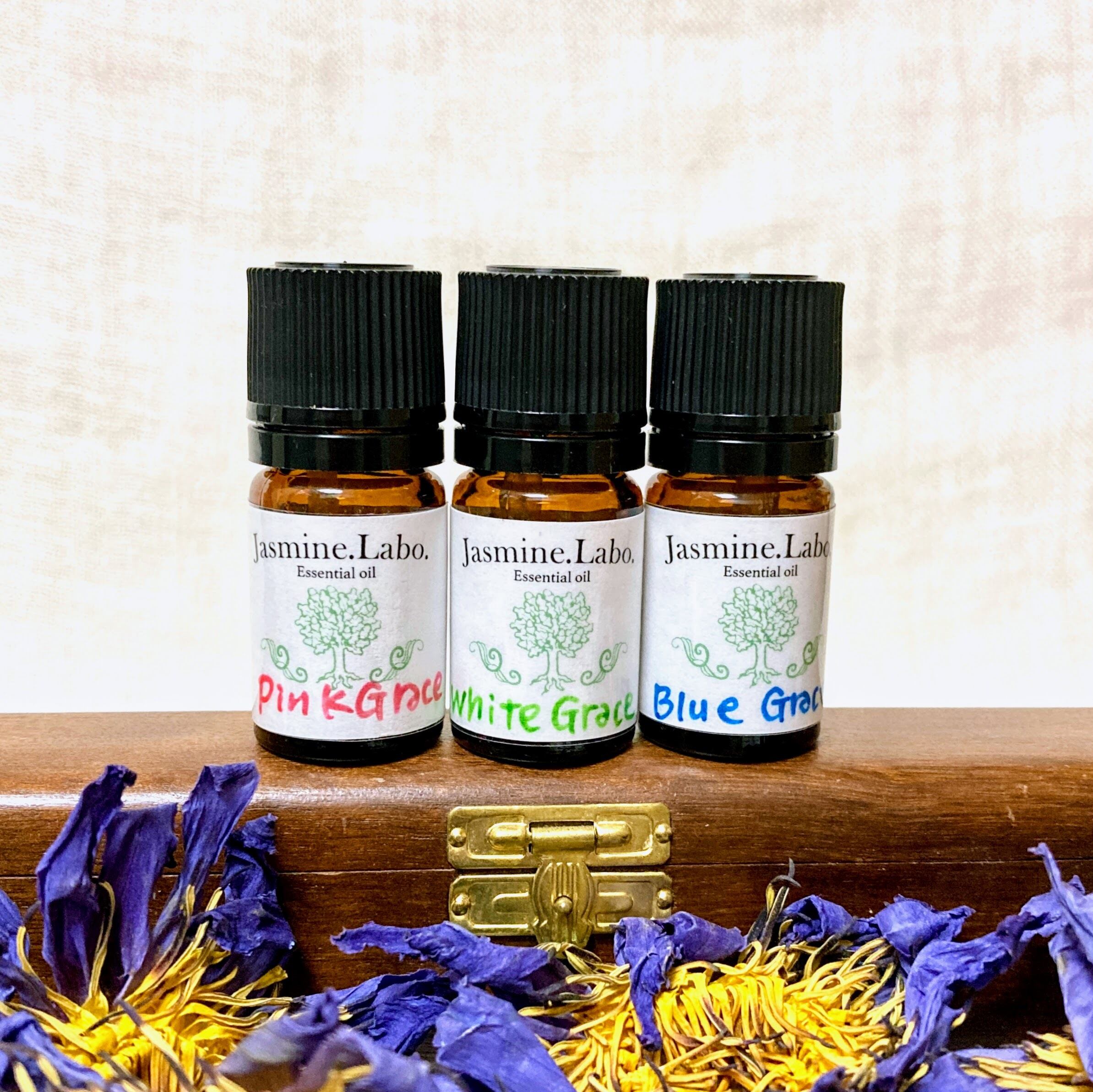 *Pink Grace 原液ブレンド2.5mlとオーガニックホホバオイル希釈5mlをご用意しました。